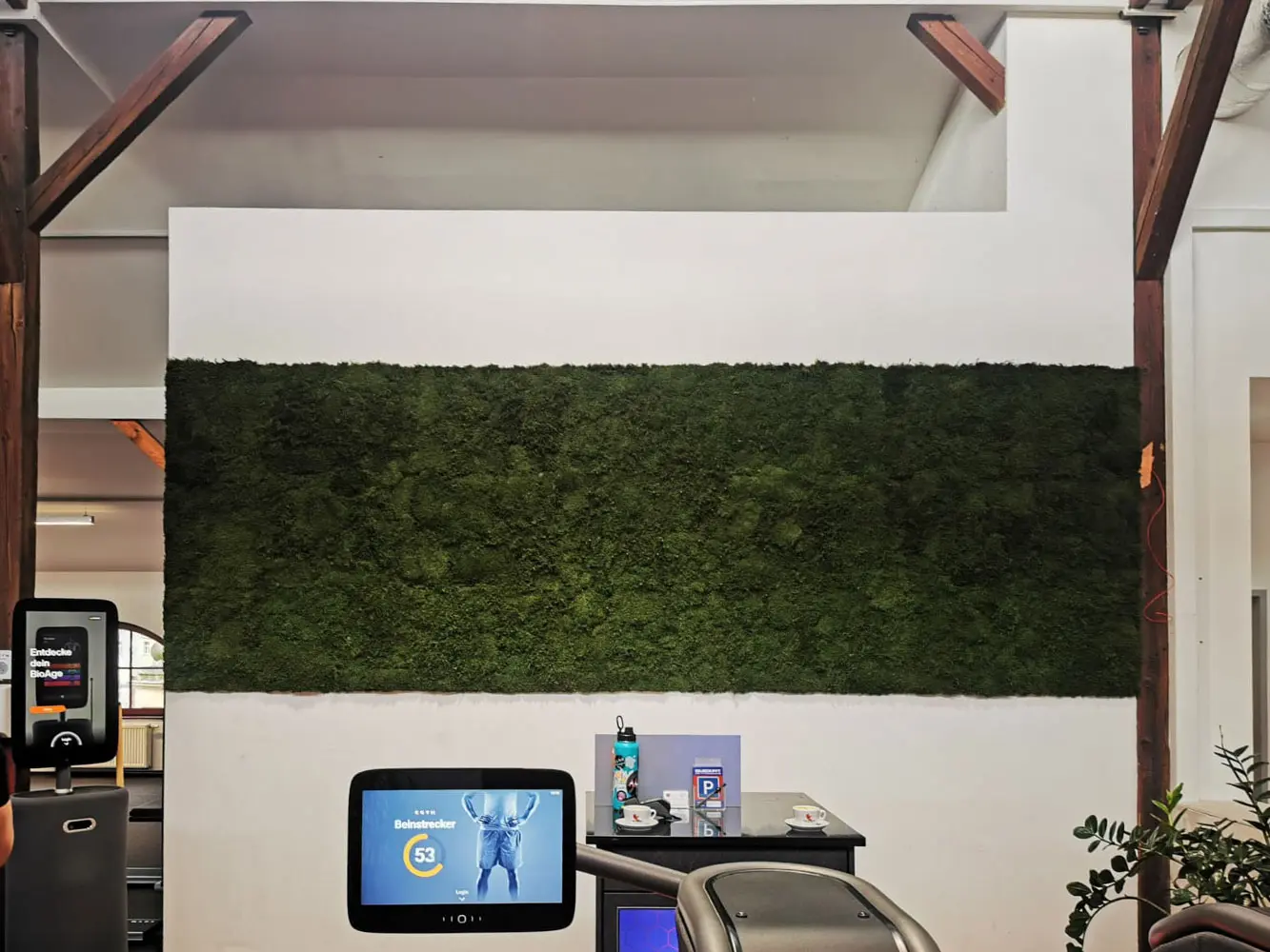 Während Ihre Konkurrenz in neue Geräte investiert, die nach 6 Monaten niemand mehr fotografiert, schafft eine natürliche Wandgestaltung eine Atmosphäre, die Mitglieder jeden Tag aufs Neue spüren – und ihren Freunden zeigen.
